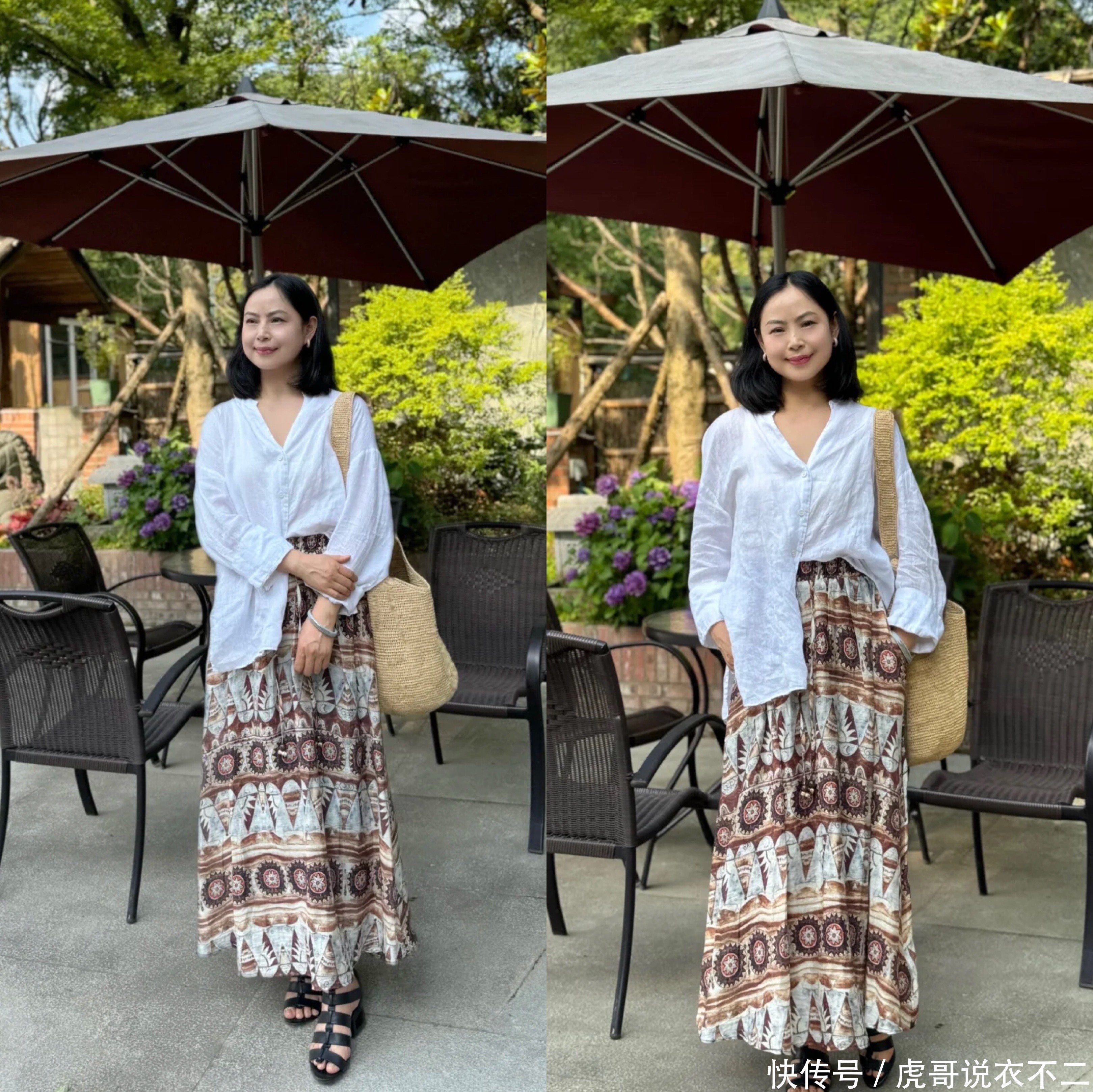白色棉麻衬衫的自然肌理,透着慵懒文艺气味,搭配高腰碎花半裙,将一侧衣摆轻塞腰间,玄妙教诲腰线又保留随意氛围。碎花与纯白的碰撞崭新不甜腻,宽松版型遮肉显瘦,50岁女性穿出松弛巩固的圭臬萧瑟风,优雅得绝不繁难。